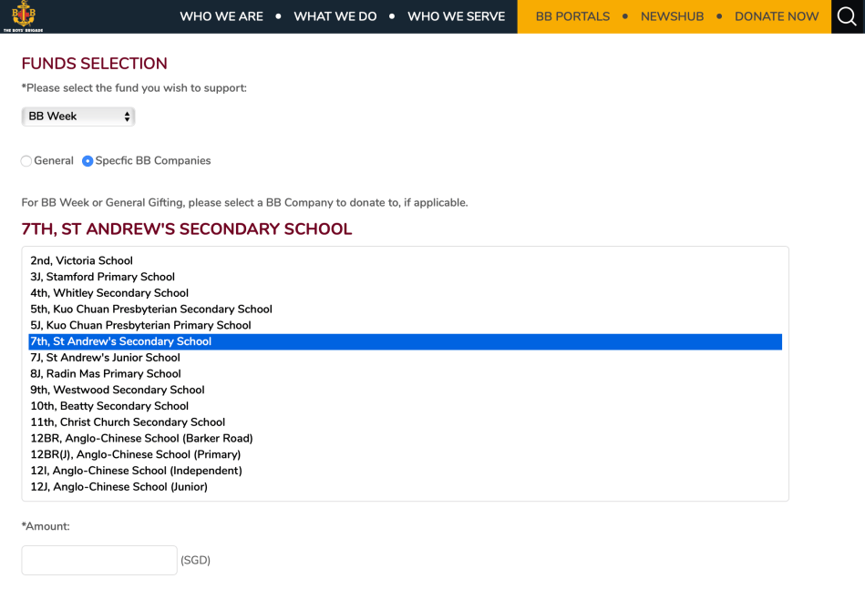 We would like to seek your support to the company by contributing financially and praying for us as we continue the work in the company. B.B. Week is back (3 Mar – 31 Mar) and we would like to take this opportunity to seek your help by donating to the company. Every dollar counts and we hope to raise $20,000 through the B.B. week this year. You may do so through the link below, select B.B. week and 7th Singapore company, St Andrew’s secondary school. We thank you in advance and may you also be Blessed in your giving!